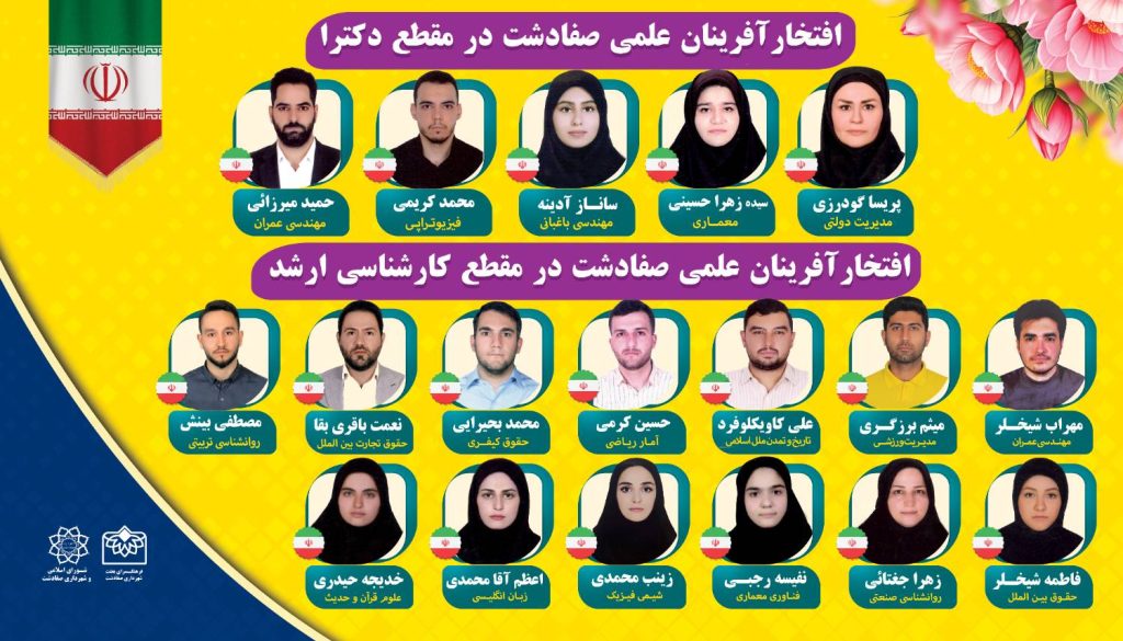 به مناسبت ۱۶ آذر روز دانشجو و درراستای تکریم از دانشجویان نخبه و ایجاد روحیه امید و افتخار در شهر،تصاویر دانشجویان ورودی سال ۱۴۰۴ صفادشت در مقاطع دکتری،کارشناسی ارشد و کارشناسی (رتبه های زیر ۳ هزار ) در بیلبوردهای سطح شهر نصب شد.